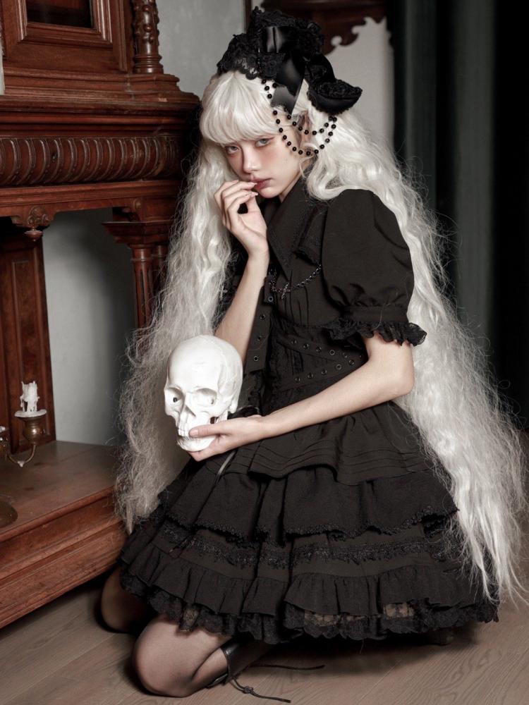 Black and White Old School Lolita Fashion Dress Bowknot Lolita JSK Set