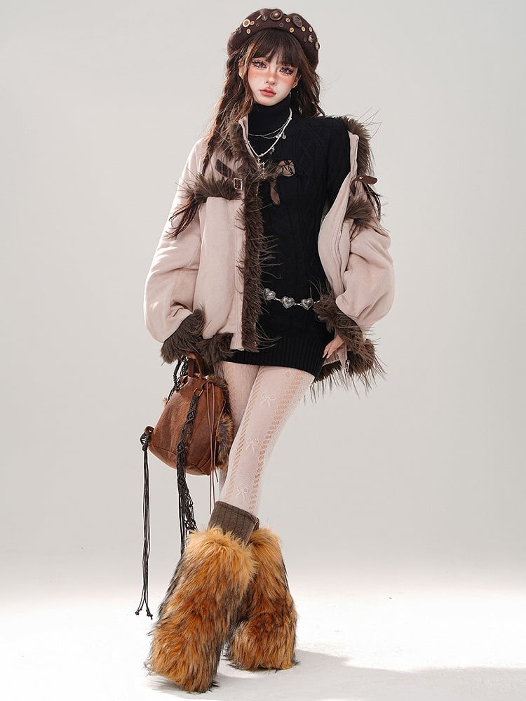 Notched Ouji Cuffs Unisex Collar Lolita Vintage Blazer with Button Coffee