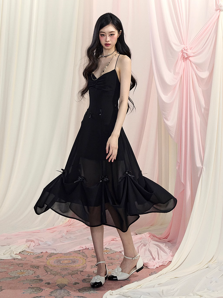 Black Halter Neck Dress Slip Ways Accents Two V-Neck Bowknot Chiffon Wear Backless