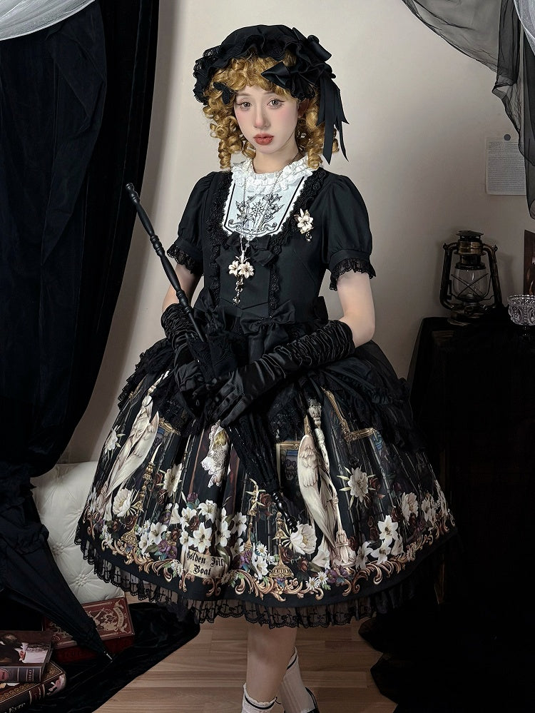 Black and White Old School Lolita Fashion Dress Bowknot Lolita JSK Set