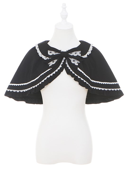 Black Lolita Cape with White Lace Trim