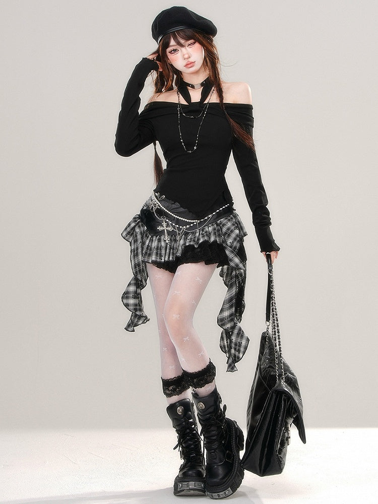 可爱的 Black/Red Asymmetrical Slit Hem Halter Neck Top with an eye-catching design and a halter neck that accentuates your shoulders. Perfect for a night out or a day at the beach.
