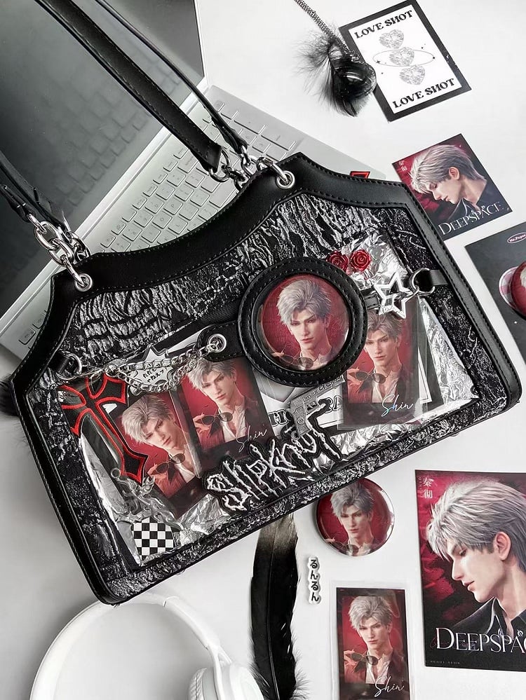 Black & Silver Snake Scale PU Ita Shoulder Bag