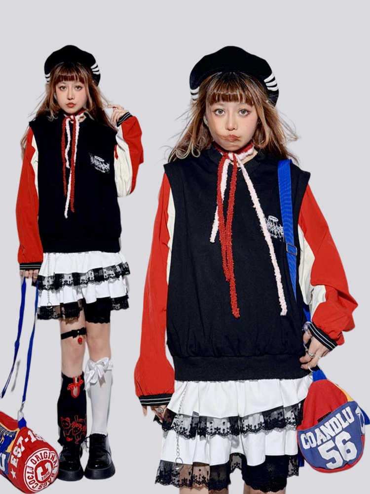 This adorable Black V-Neck Punk Loose Sleeveless Vest offers a unique and edgy style. The v-neck design and loose fit make it a comfortable and stylish addition to any wardrobe. Perfect for standing out from the crowd with a touch of punk.