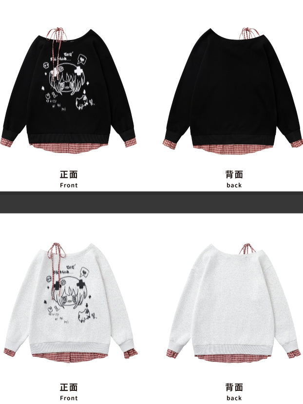 This Yami Kawaii top features a unique black and white asymmetrical neckline and plaid cuffs, adding a touch of cuteness to your outfit. Its stylish design is perfect for those who love to express their individuality.