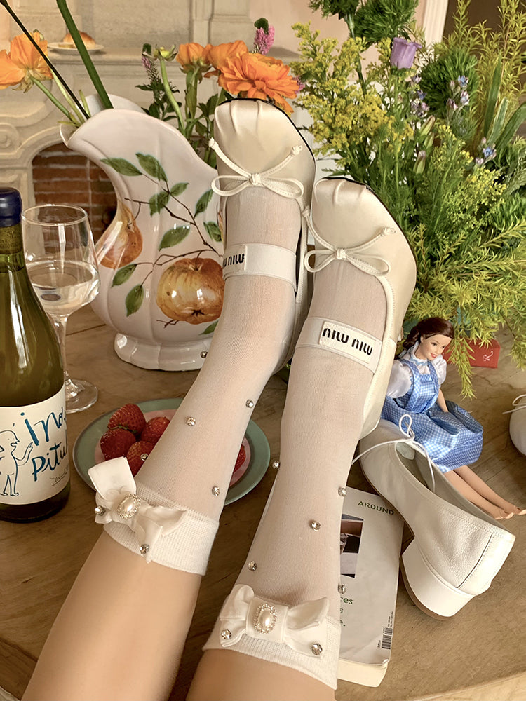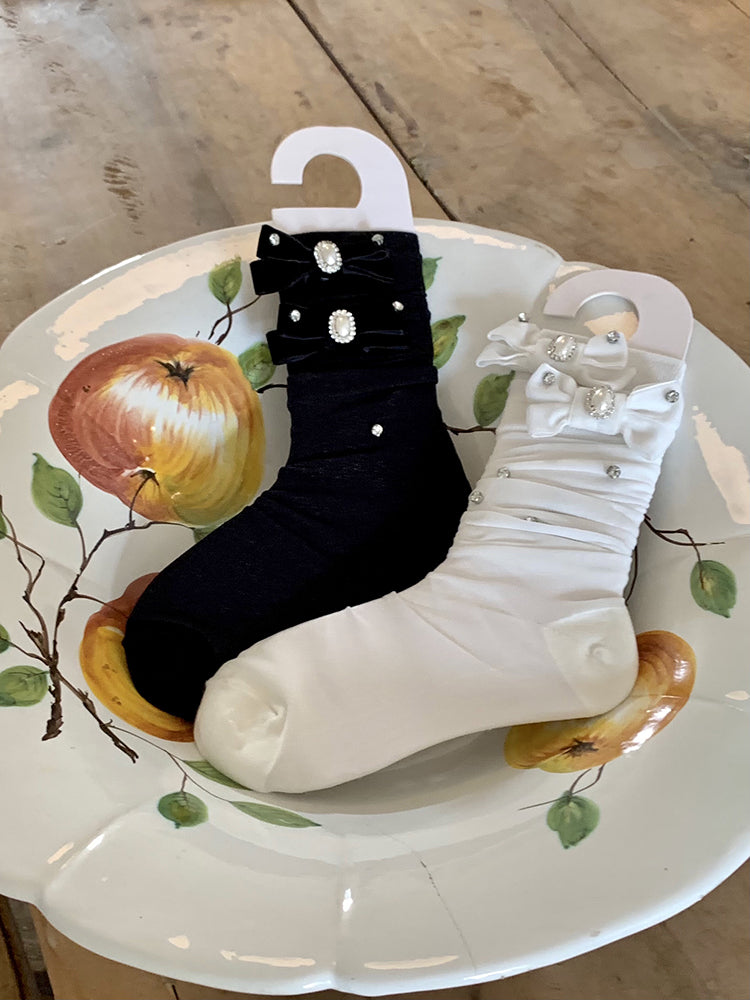 Pearly White / Black Classic & Versatile, Cute Bow Crew Socks