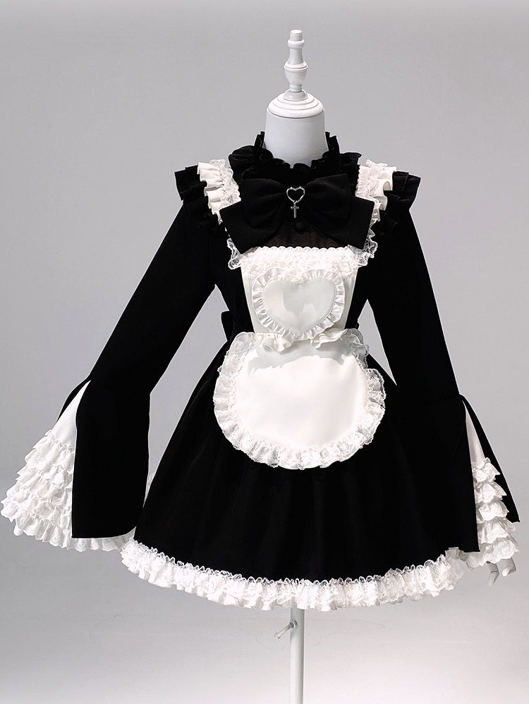 Black & White Jirai Kei Maid Outfit - Bell Sleeve Dress with Apron & Shorts
