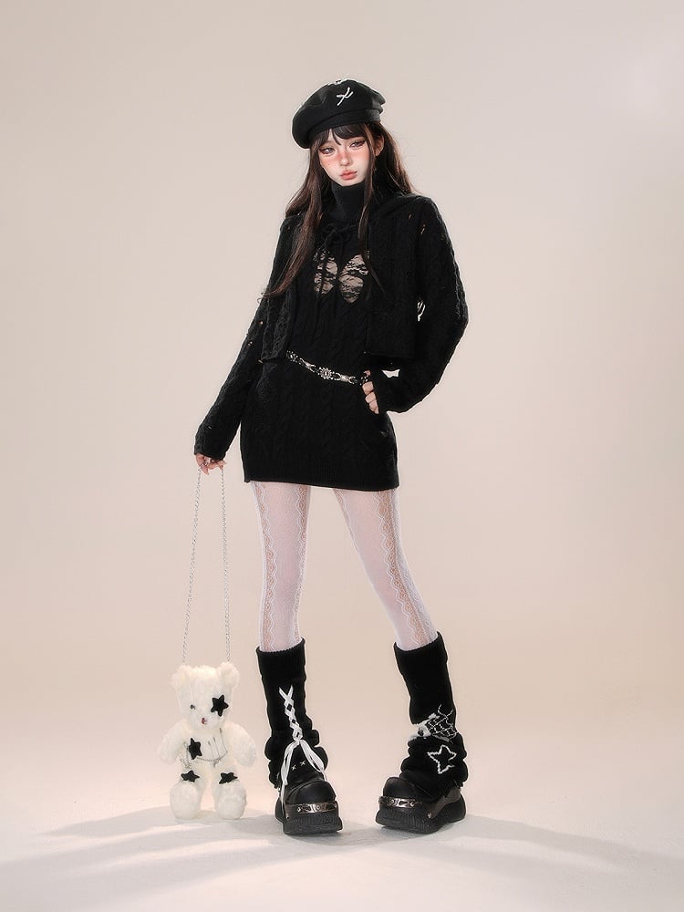 Add a touch of sweetness to your wardrobe with this lovely Black White Lace Butterfly Hollow Knitted Dress. The delicate lace and butterfly design create a cute and charming look, perfect for any occasion. The soft and stretchy knit material ensures a comfortable and flattering fit.