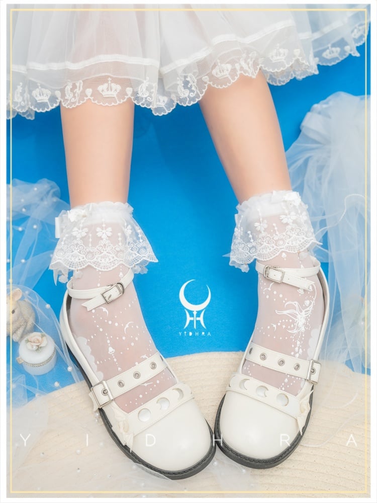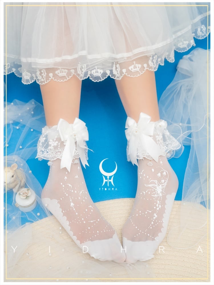 These adorable socks feature a charming black and white lily of the valley print, adding a touch of sweetness to your everyday look. Made with high-quality materials, these socks are sure to keep your feet comfortable and stylish. Perfect for any occasion, these socks are a must-have for any fashion-forward wardrobe.