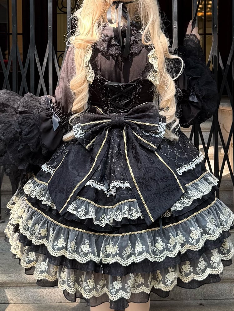 Black and White Old School Lolita Fashion Dress Bowknot Lolita JSK Set