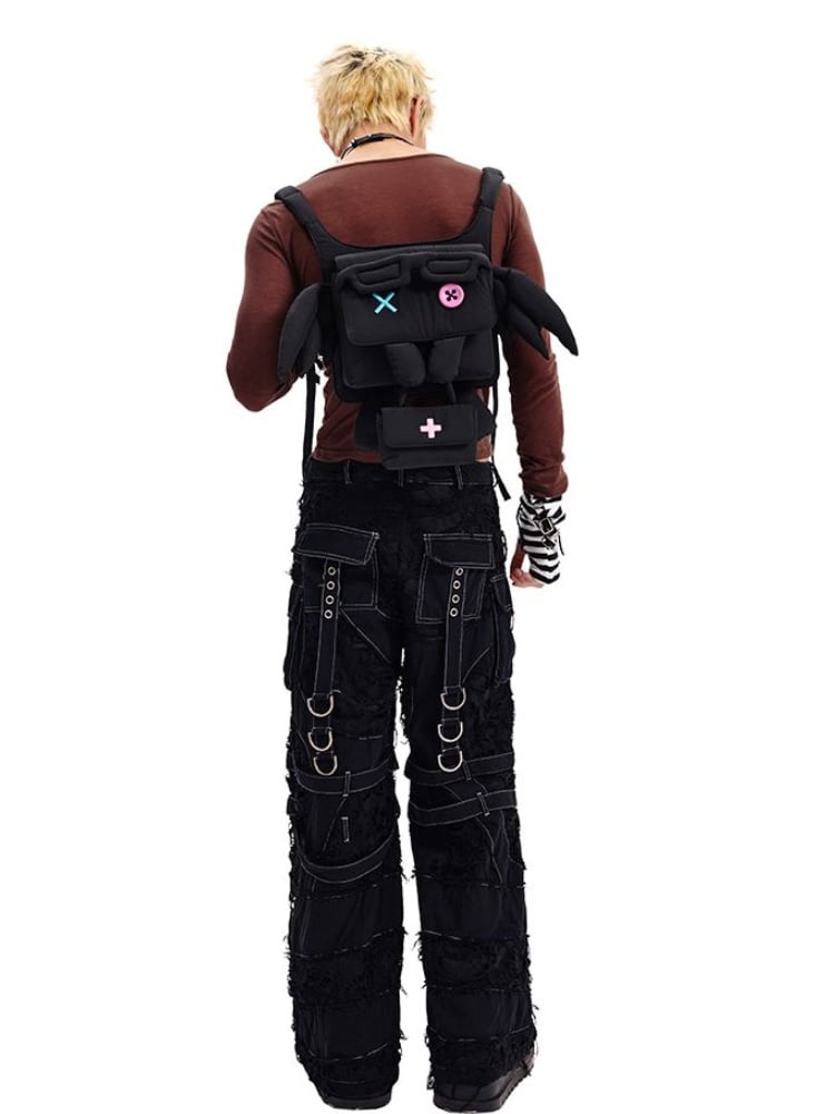 This adorable bag is perfect for those who love to make a statement. With its unique cross elf wings design in black and white, it's sure to turn heads. Carry all your essentials with ease, while adding a touch of kawaii charm to your outfit.