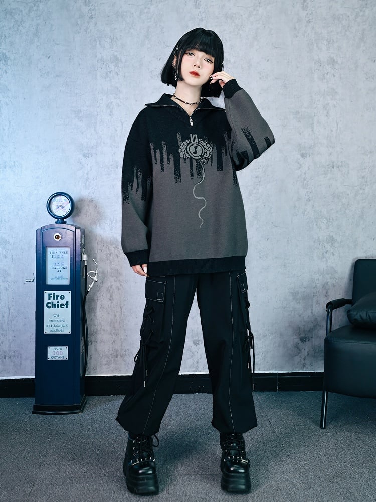 Zip Closure Design Jacket Asymmetrical Black Punk -