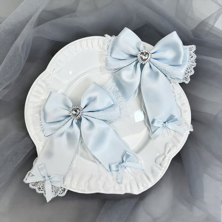 Black/Blue/White Heart Hairclip Lace Trim Rhinestone Bowknot