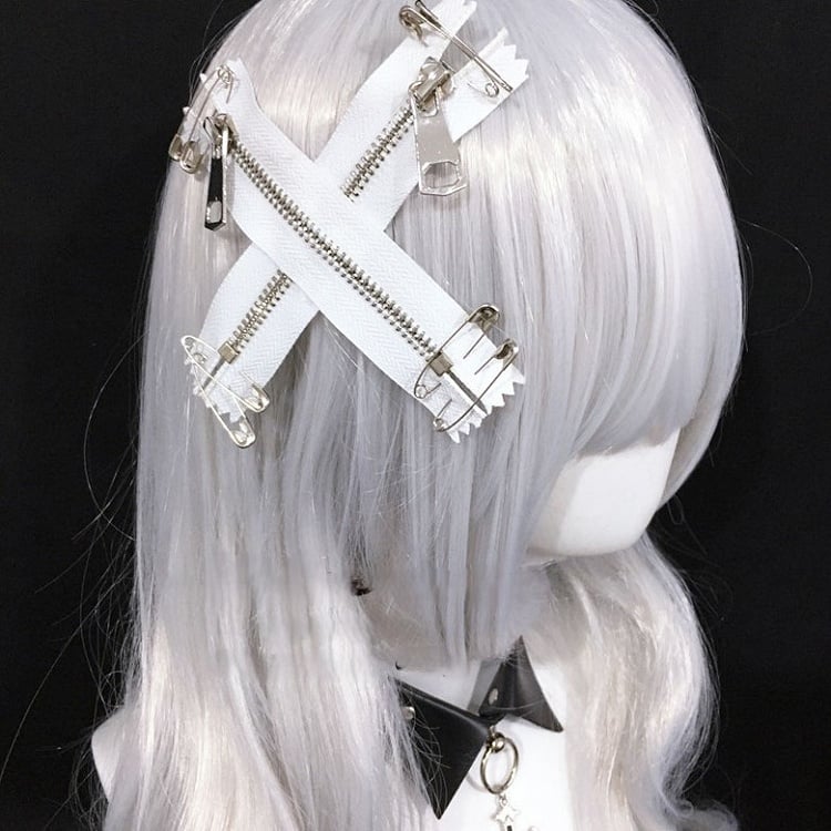 Black/White Details Safety Punk Pin Hairclip with Zipper