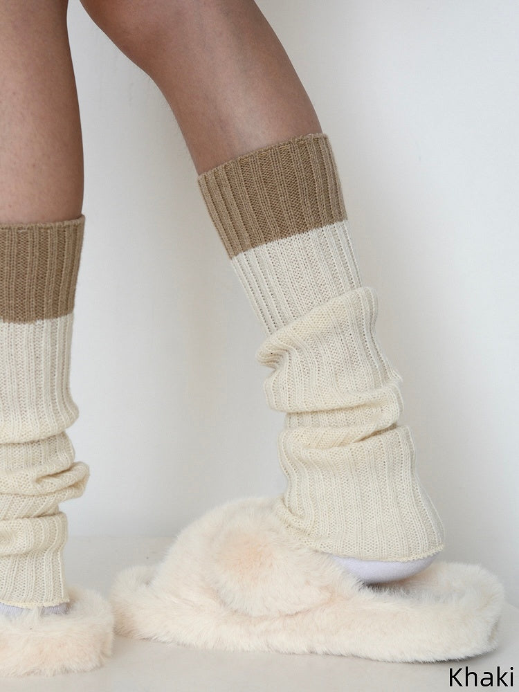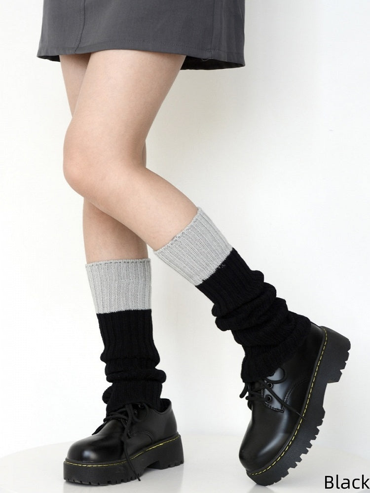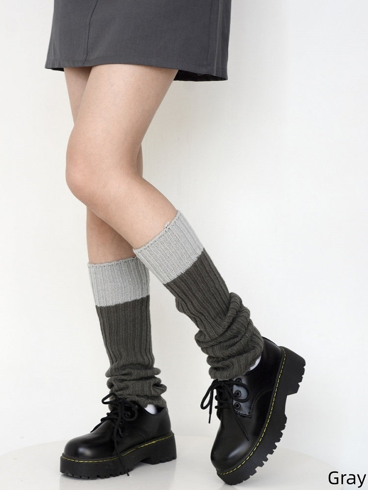 Ultra-Thin Leg Warmers Gray/Creamy White/Black Knitted Striped 35CM Vertical