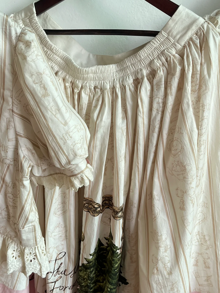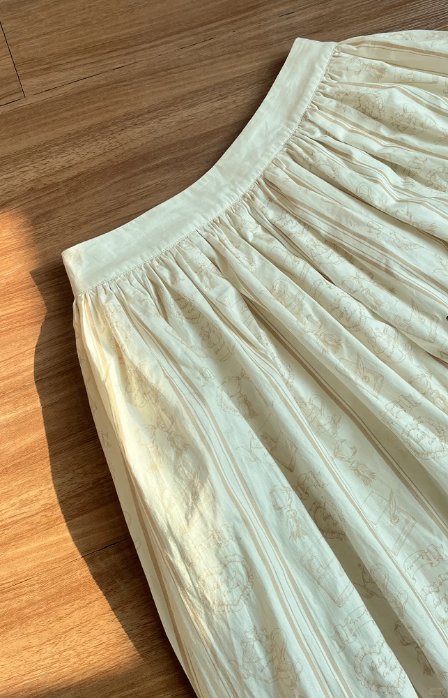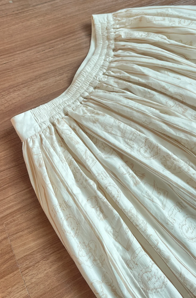 Plus Sizes Available Creamy Short Sleeves Blouse + Little Grils and Toys Print Skirt Set