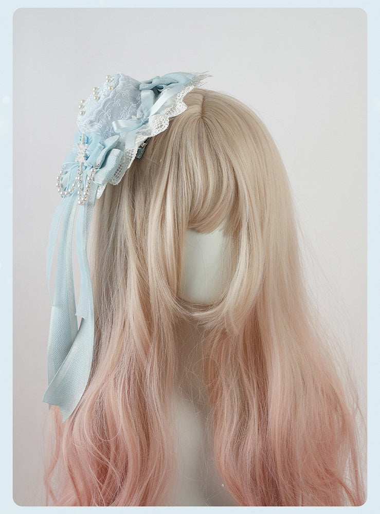 Blue Big Bow Lace Trim Snowflake Mini Hat with Beaded Chain
