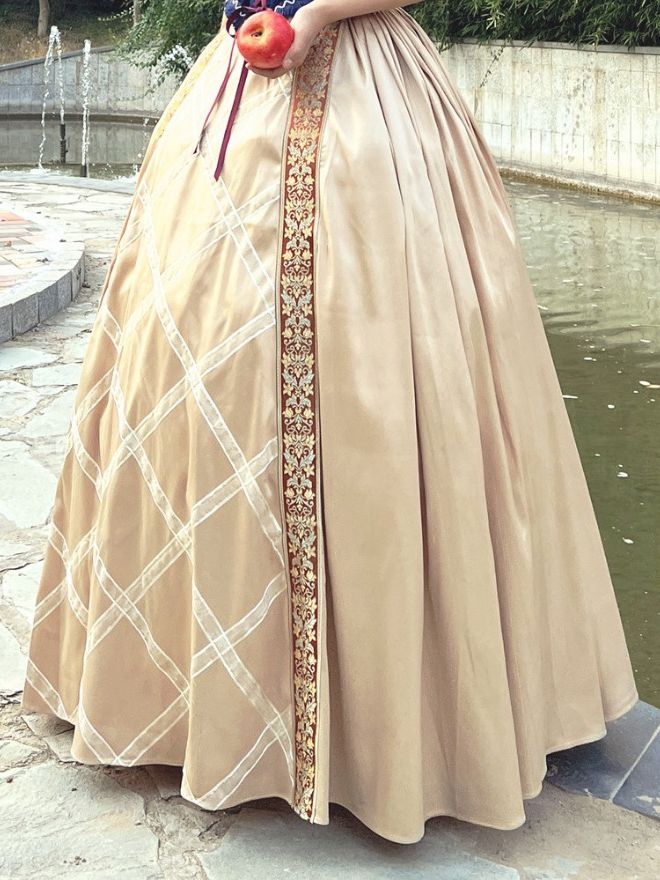 Get ready to make a statement with this adorable Blue Boned Corset Golden Skirt Lace Collar Set. The blue boned corset accentuates your figure while the golden skirt adds a touch of elegance. The lace collar completes the look with a feminine touch. Stand out in this set and turn heads wherever you go.