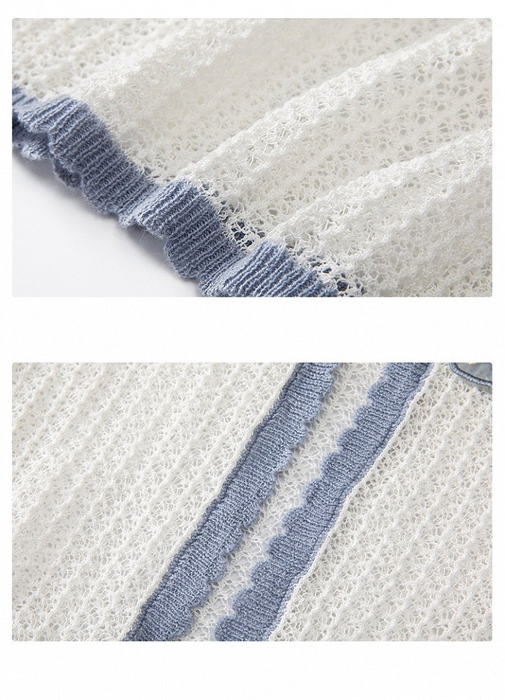 This sweet top features charming blue bowknot appliques on the neckline and short sleeves. Perfect for adding a touch of cuteness to any outfit.