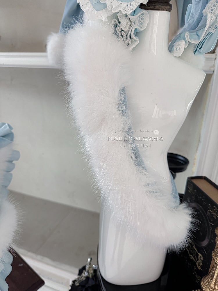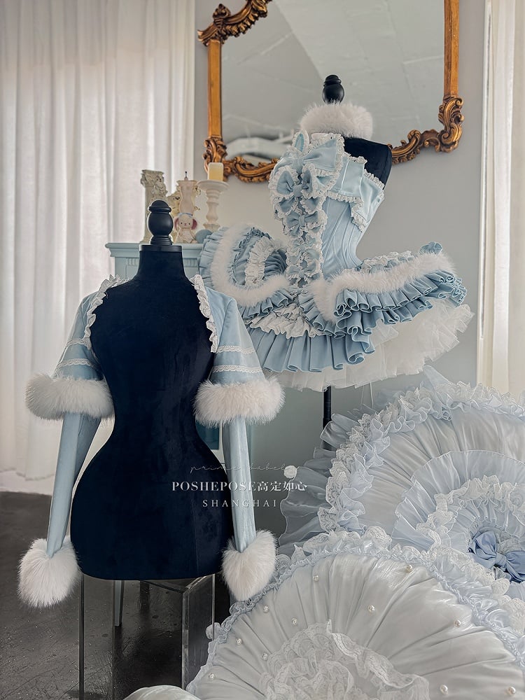 Blue Bunny Ears Bowknot Bodice Layered Skirt Boning Dress + Cropped Cape Top Set