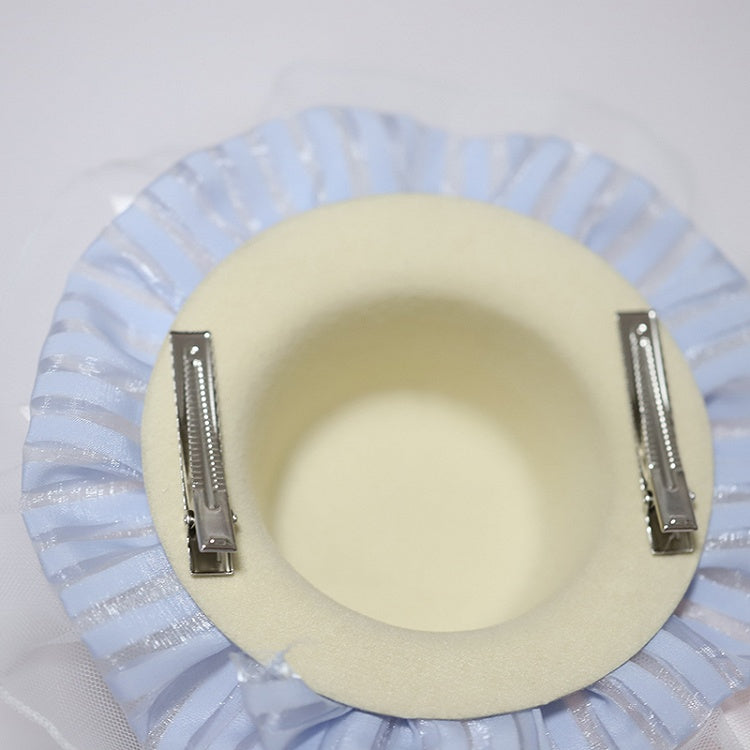 Blue Charm/Cat Lolita Hat and Mini White Ear with Flower Golden Trim Hairclips Lace Bell