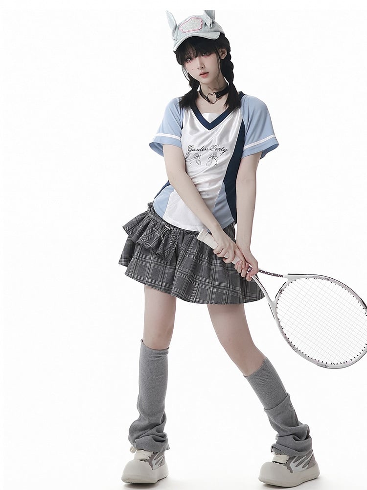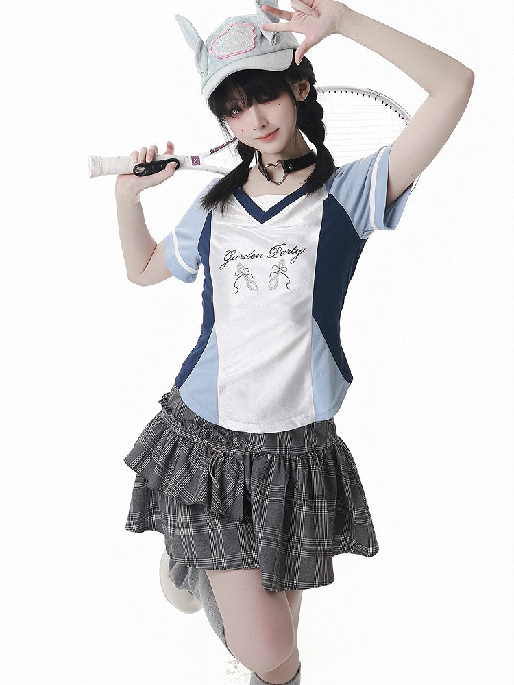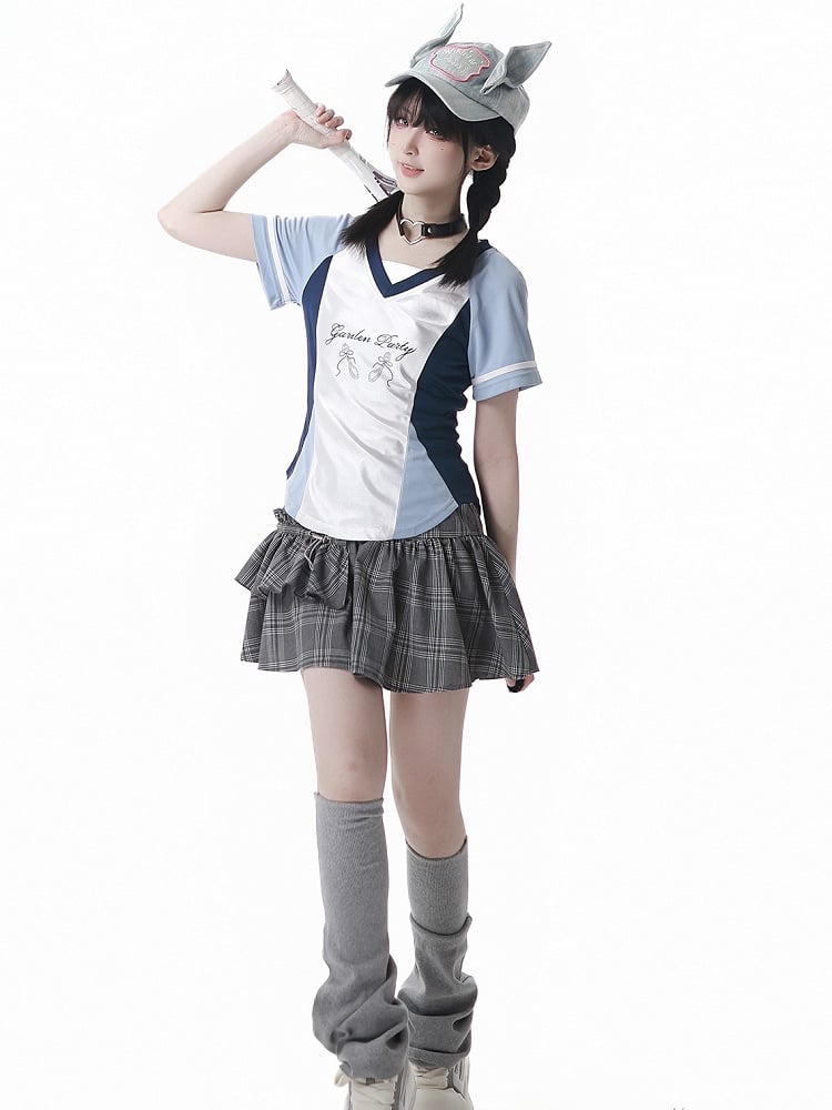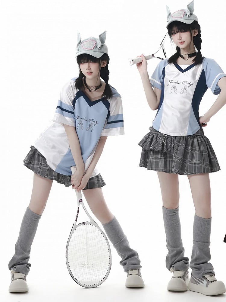 Blue Colorblock Design Blokette Core V-neck T-shirt