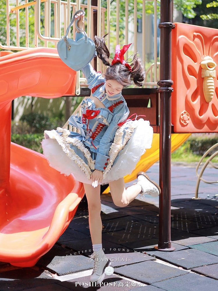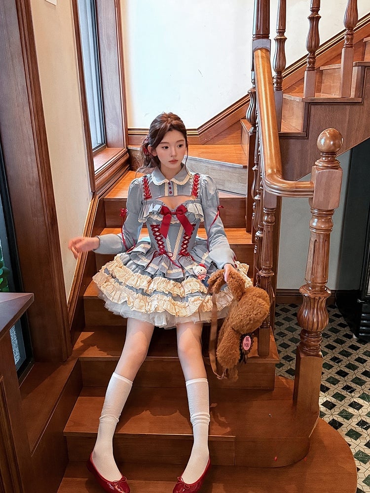 Blue Lace-up Boned Corset Top + Puffy Skirt + Bolero Full Set