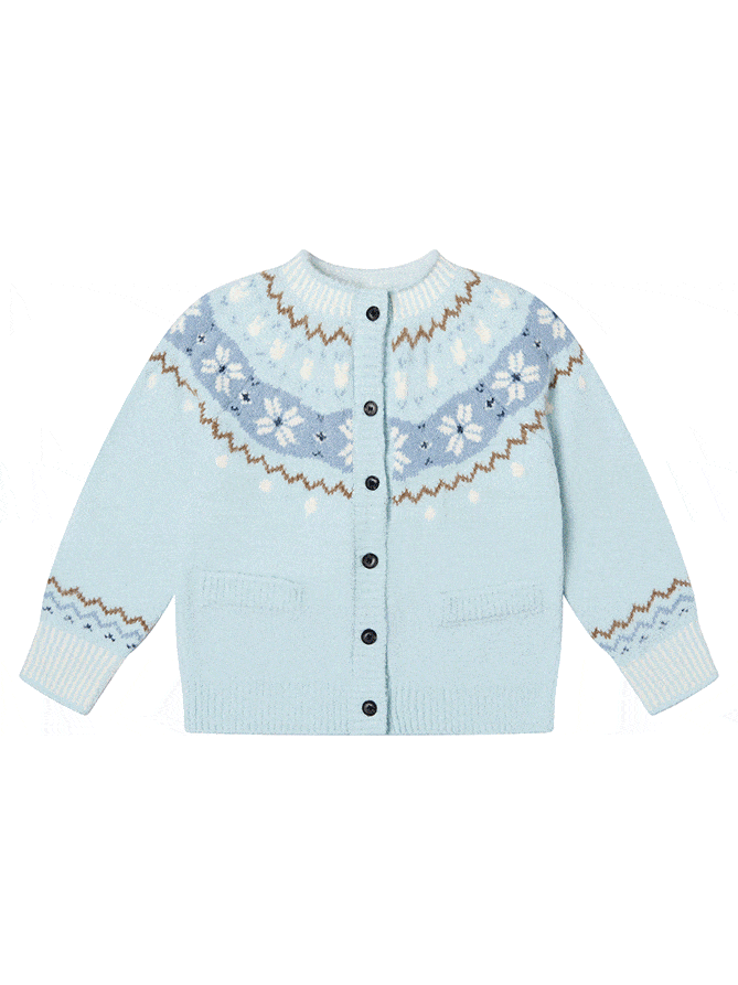 Vintage Snowflake Pattern Light Blue Knit Cardigan