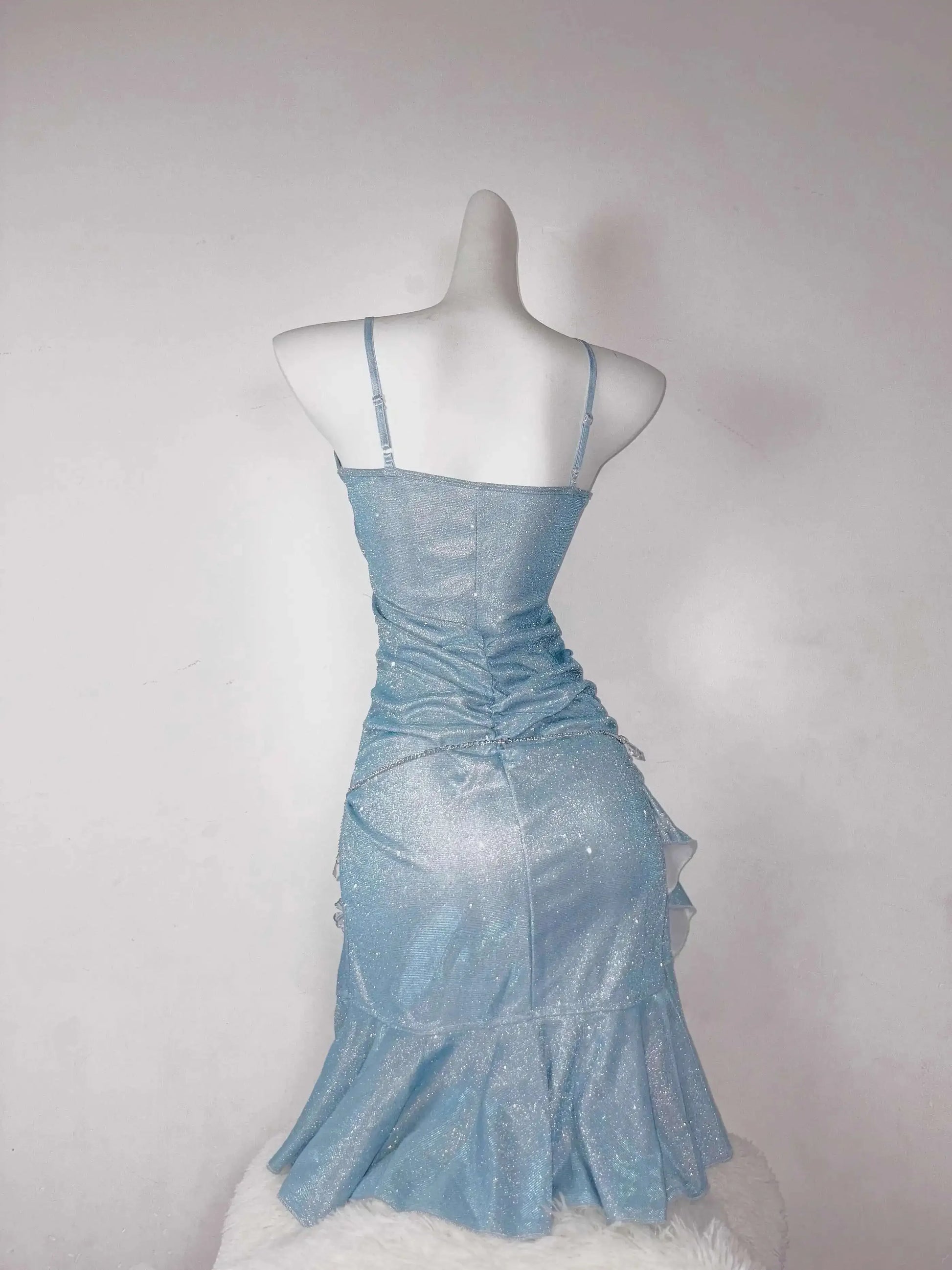 Blue Showa Princess Sexy Butt Wrapped Fish Tail Sparkling Small Dress