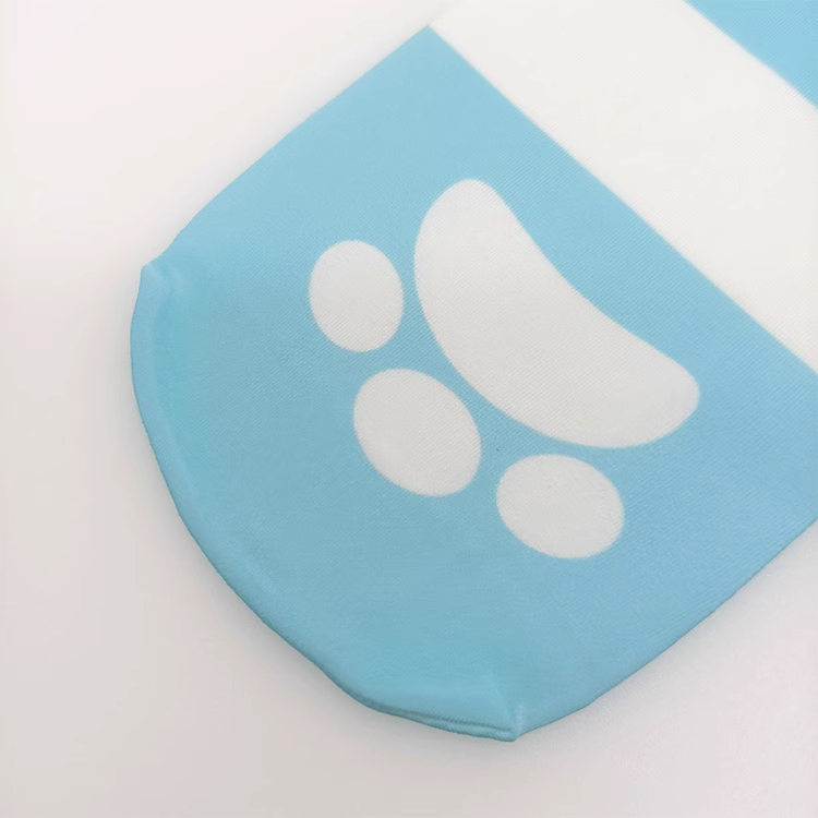 These over-the-knee stockings feature a charming blue and white striped pattern, adorned with cute cat paw prints. Made of soft, comfortable material, they are perfect for adding a touch of whimsy to any outfit. Show off your unique style and love for feline friends with these adorable stockings.