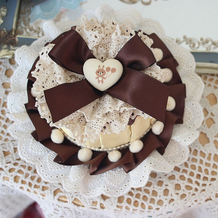 This adorable top hat features a charming blue and yellow color scheme, with delicate bowknot details and lace trim. Perfect for adding a touch of whimsy to any outfit.