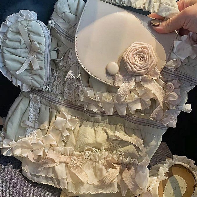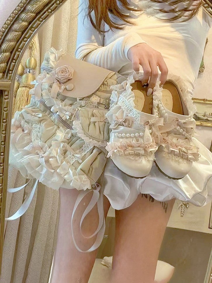 Light Apricot Elegant Lolita 2-Way Bag with Bow Accents, Rose Embellishments & Lace Trim