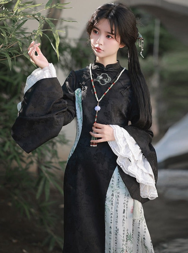 Bow + Necklace Dress China Asymmetrical Long + Beaded Big