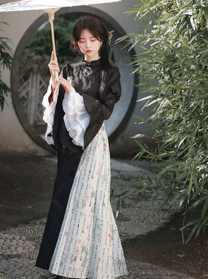 Black and White Old School Lolita Fashion Dress Bowknot Lolita JSK Set