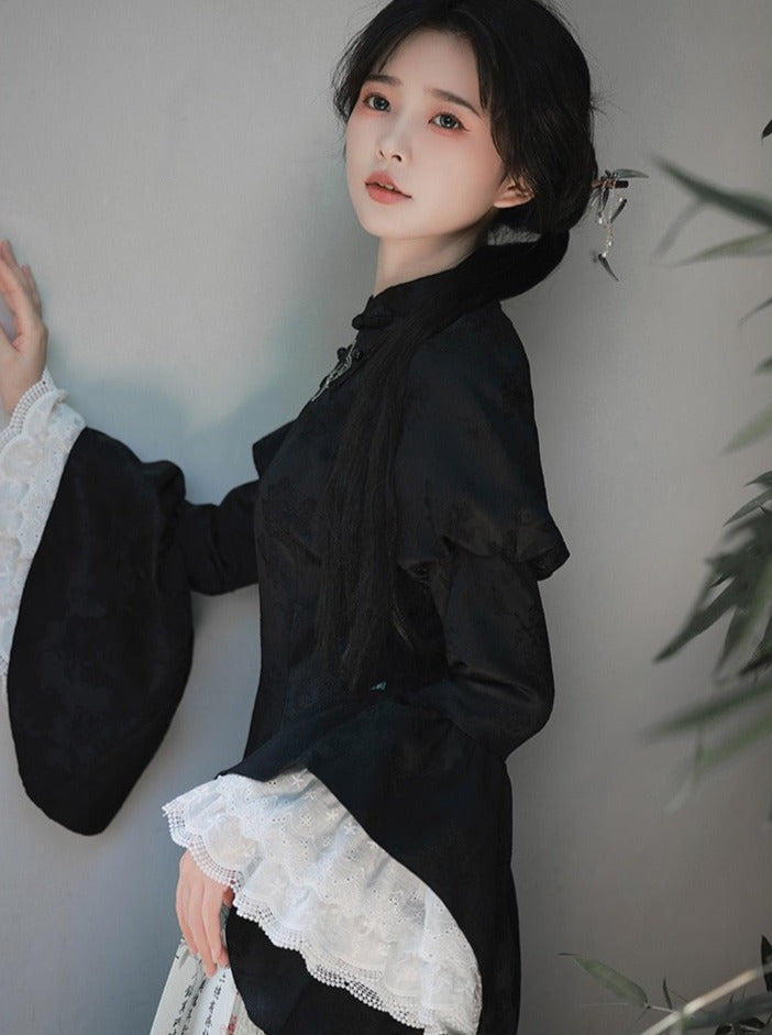 This adorable dress features a unique asymmetrical design and is adorned with a delicate beaded bow necklace. Perfect for adding a touch of Chinese style to your wardrobe, while standing out in a crowd. Feel confident and beautiful in this one-of-a-kind dress!