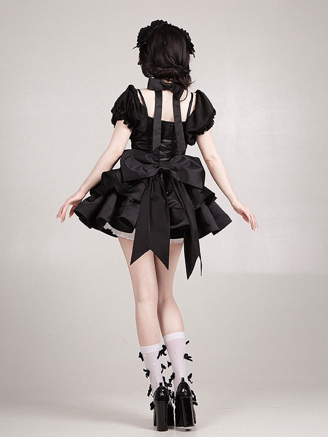 Black and White Old School Lolita Fashion Dress Bowknot Lolita JSK Set
