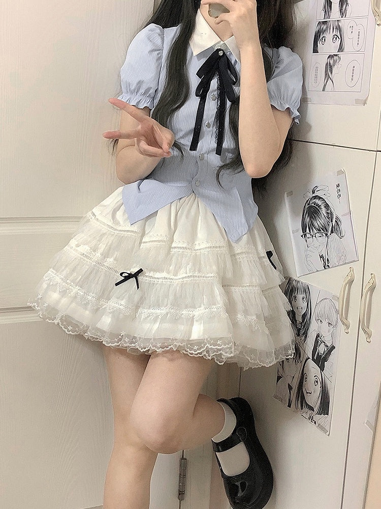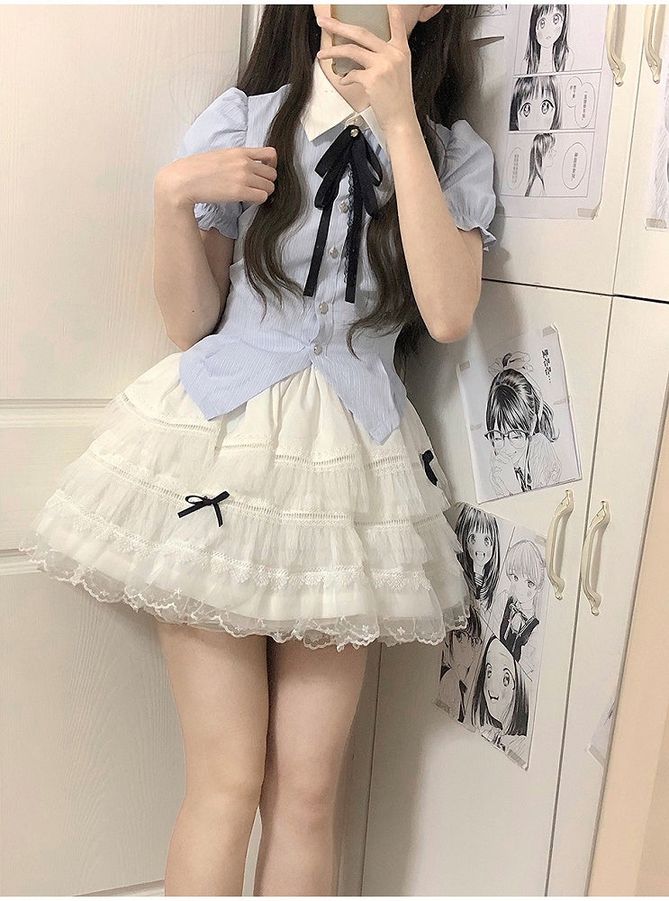 Blue and White Old School Lolita Fashion Dress Bowknot Detais JSK Set