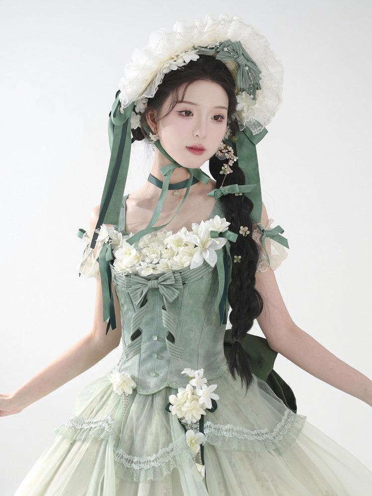 Black and White Old School Lolita Fashion Dress Bowknot Lolita JSK Set