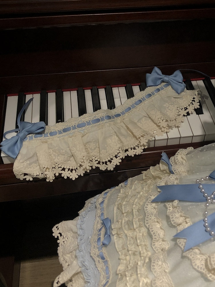 Blue and White Old School Lolita Fashion Dress Bowknot Detais JSK Set