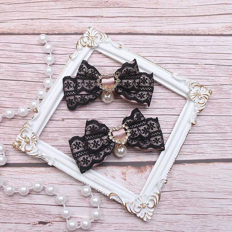 Jirai Kei 10 Color Options Lace Bowknot Heart Rhinestone Pearl Hairclip