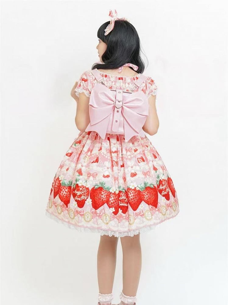 Pink and White Old School Lolita Fashion Dress Bowknot Detais Lolita JSK Set