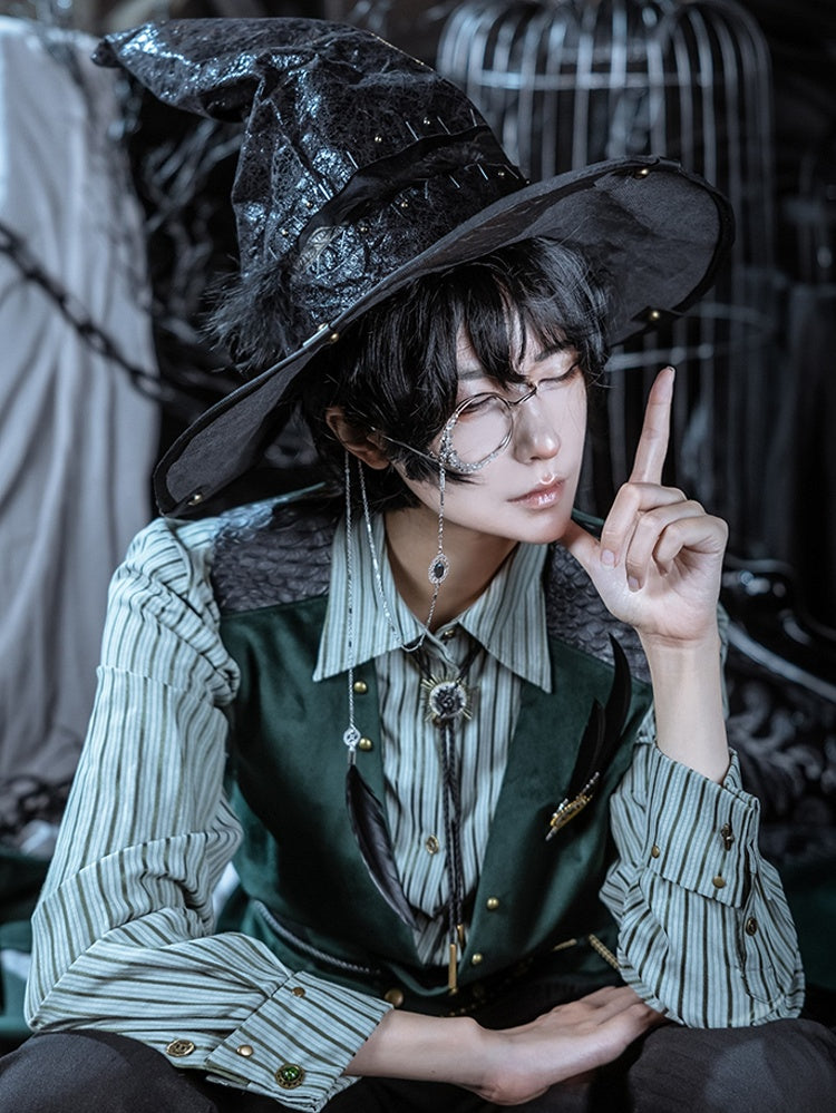 Steampunk Green Rhinestone Gear Design Black Feather Decorated Brooch