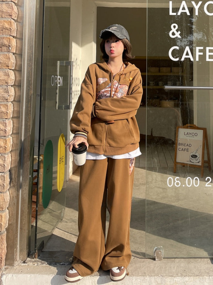 Millard Fashion Prince Print Vintage Brown Drawstring Cuffs Wide-Leg Pants