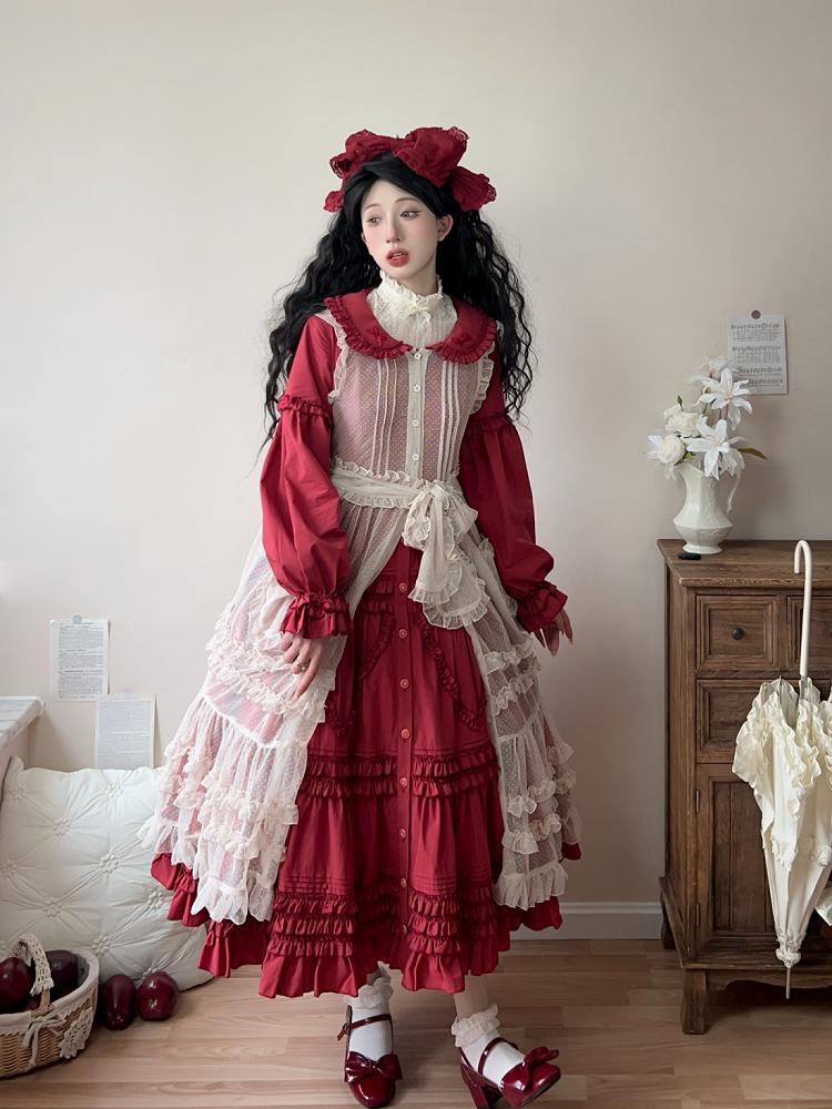 Bunny Beige Pattern Ear with Overdress Polka-dot Lolita Ruffled Hood