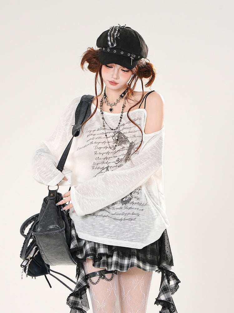 Butterfly Print Asymmetrical Neckline Khaki/White Semi-sheer Coverup