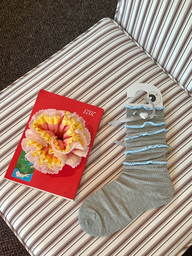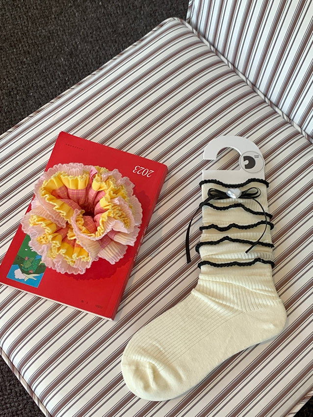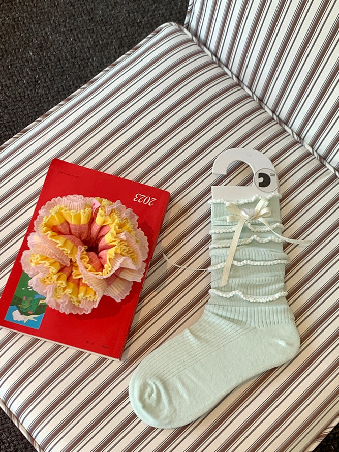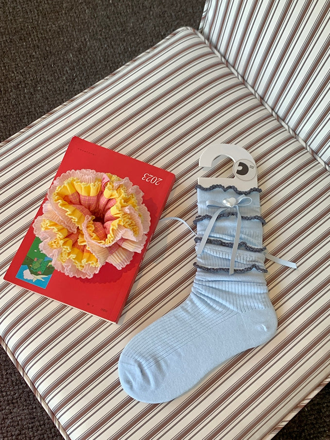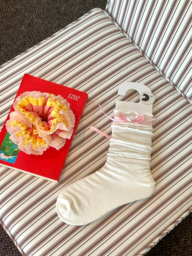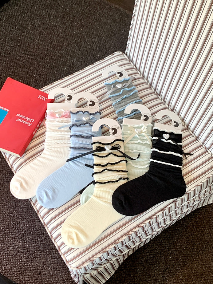 6 Color Options Beaded Heart Decorated Bowknot Detail Loose Calf Socks