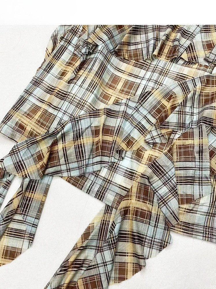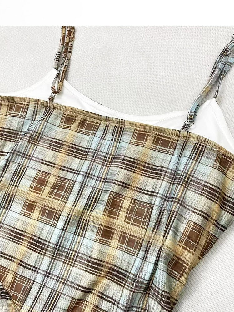 Cami Pattern Y2K Blue Asymmetrical Hem Plaid Glamorous Dress