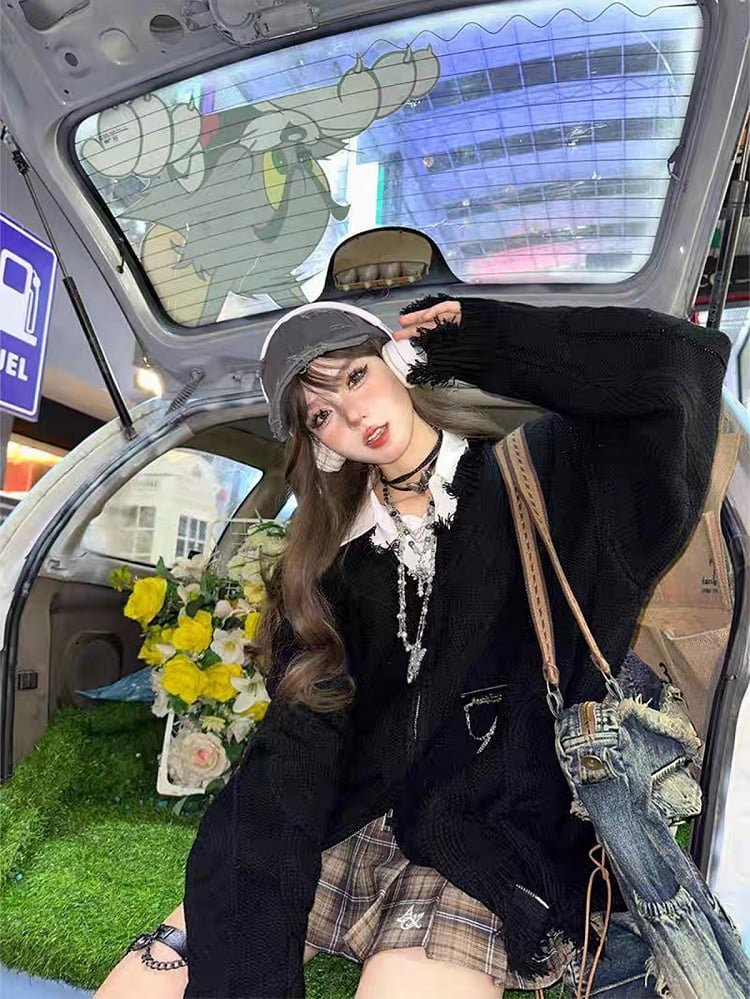 Cardigan Edgy Black Academiacore Zip-Up Knit