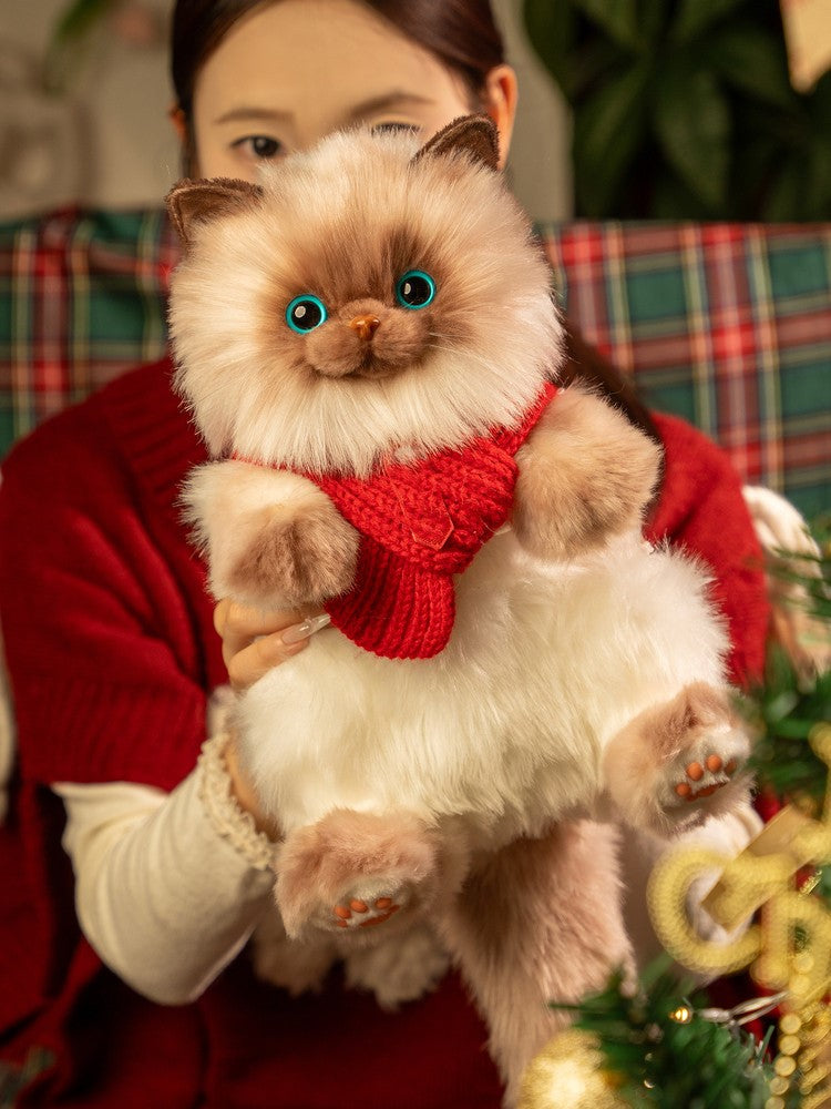 Realistic Sitting Siamese Cat Plush Backpack/Crossbody Bag