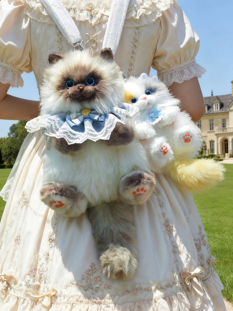 Cat Sitting Plush Bag Siamese Realistic Backpack/Crossbody